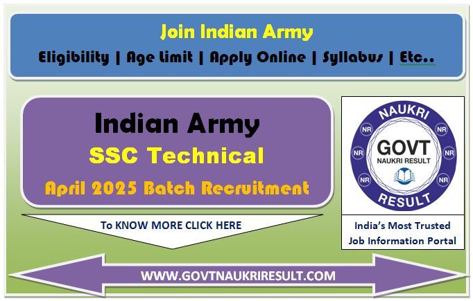Indian Army SSC Technical April 2025 Trade Wise -Vacancy Details with Eligibility